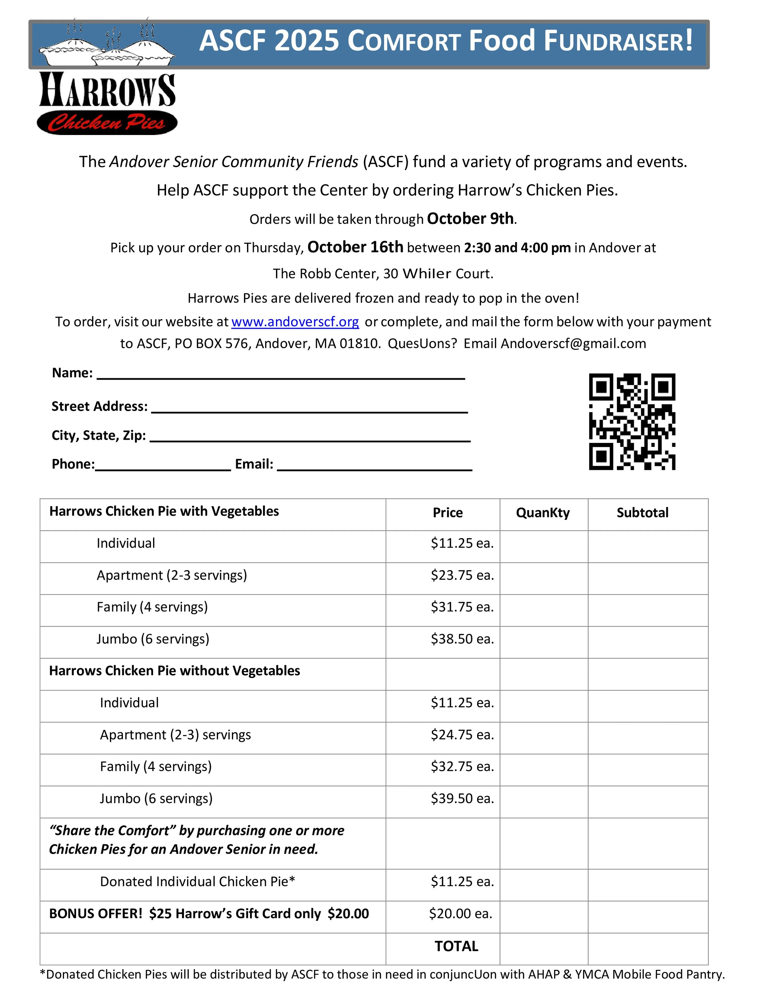 Andover Senior Community Friends promote, sponsor and support programs and services that enrich the quality of life of Andover seniors.
